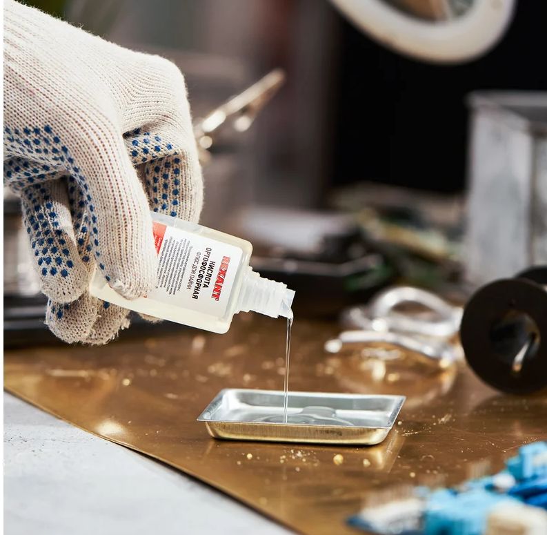Ортофосфорная кислота REXANT — это эффективное средство для очистки поверхности перед пайкой.