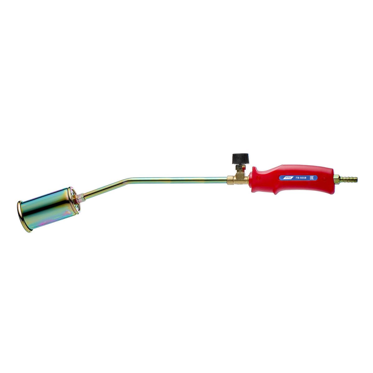 Горелка ручная газовоздушная пропановая с одним соплом диаметром 45 мм для нагрева изделий и заготовок из черных и цветных металлов. Горелка с вентилем подачи горючего газа. Длина горелки 550 мм.