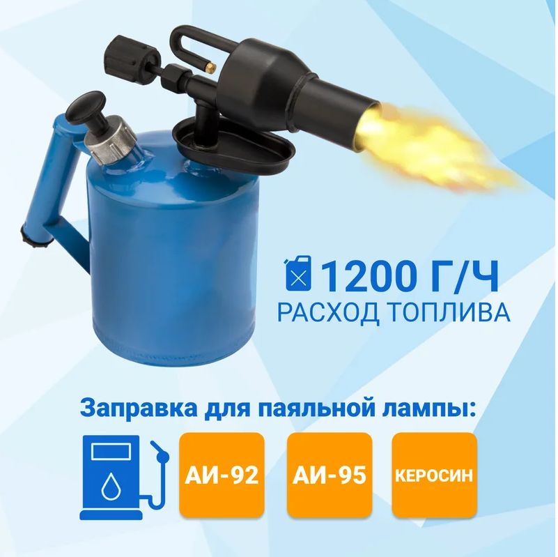 Паяльная лампа REXANT ПЛ-2,0 обладает экономичным потреблением топлива. Данный инструмент работает на бензине или керосине и используется для нагрева различных предметов, для проведения ремонта, восстановительных работ, пайки, термообработки мелких деталей, нагрева сосудов с негорючими жидкостями и т. д.