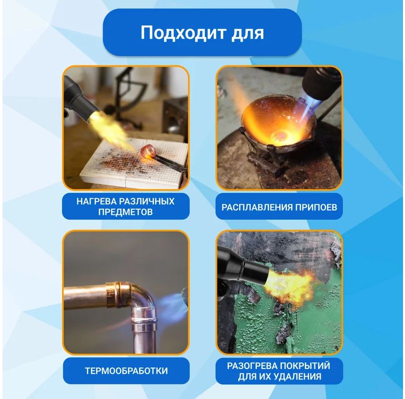 Лампа оснащена регулировочным винтом, для управления мощностью пламени, соответственно и температурой нагрева. Наиболее частые случаи применения: