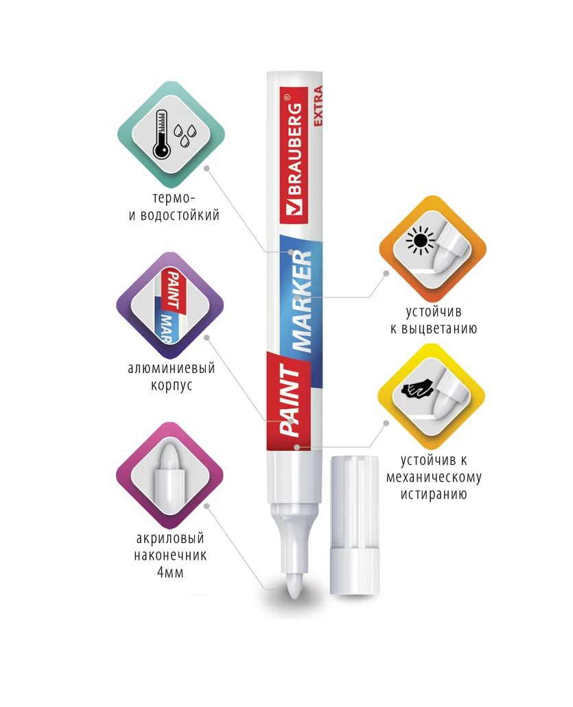 Читать все статьиМаркер-краска лаковый белый 4мм EXTRA BRAUBERG