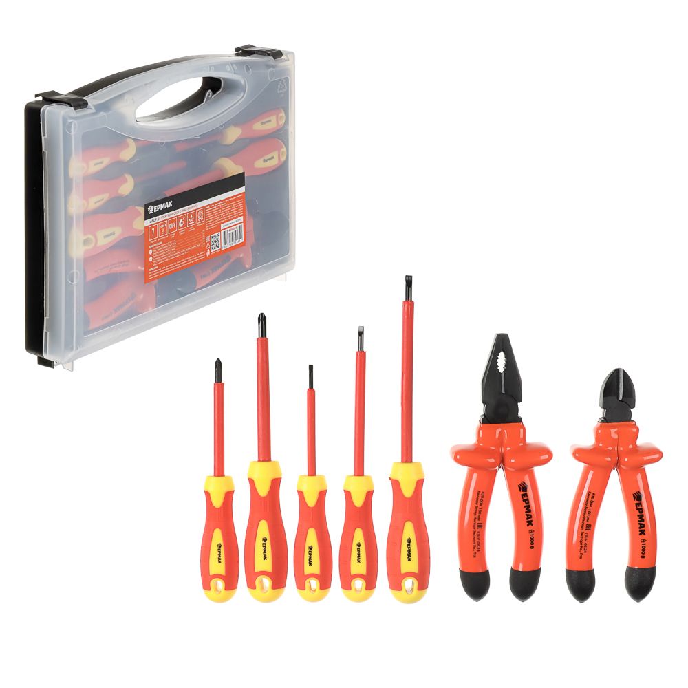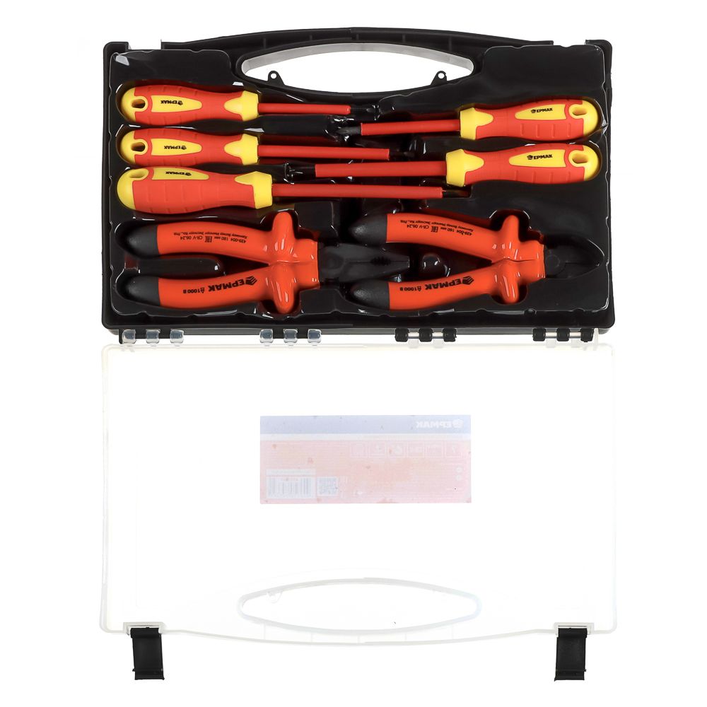 Профессиональный комплект для безопасной работы с электрическими сетями под напряжением. Изолированные рукоятки инструментов обеспечивают надежную защиту при работе с напряжением до 1000В. В набор входят все необходимые инструменты для электромонтажных работ, выполненные из прочной инструментальной стали.