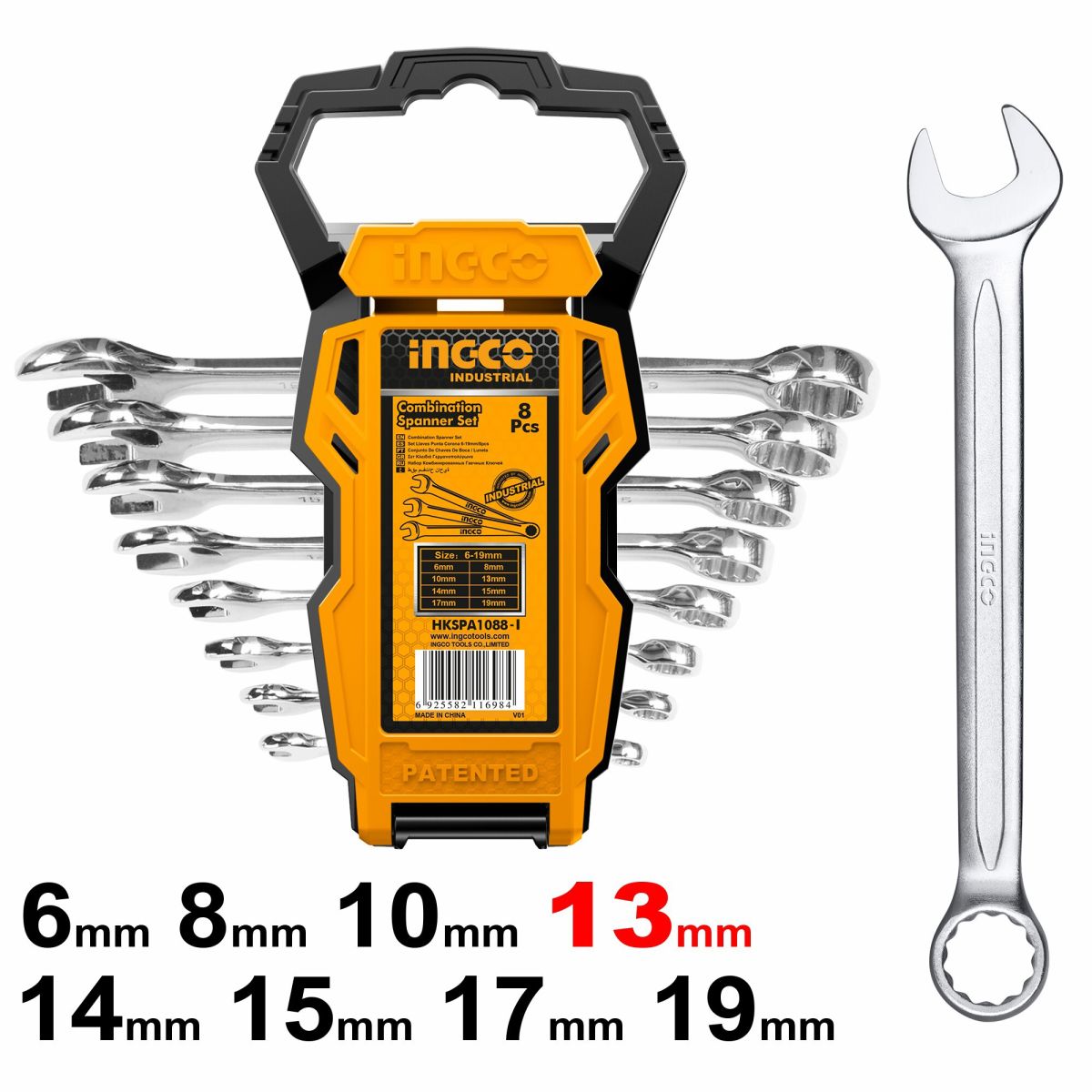 Набор комбинированных гаечных ключей INGCO HKSPA1088-I INDUSTRIAL 6-19 мм 8 шт. - комплект профессиональных ручных инструментов, которые станут надежными помощниками для ремонта и обслуживания различной техники и конструкций, где используется шестигранный тип крепежа.