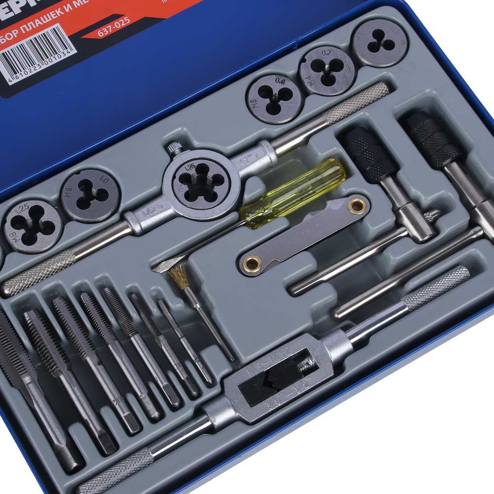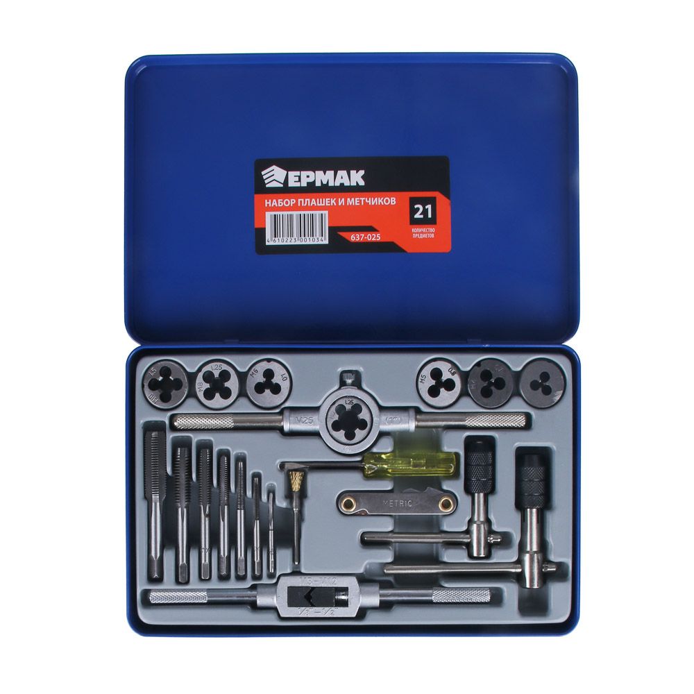 Читать все статьиНабор плашек и метчиков 21шт Ермак 637-025
