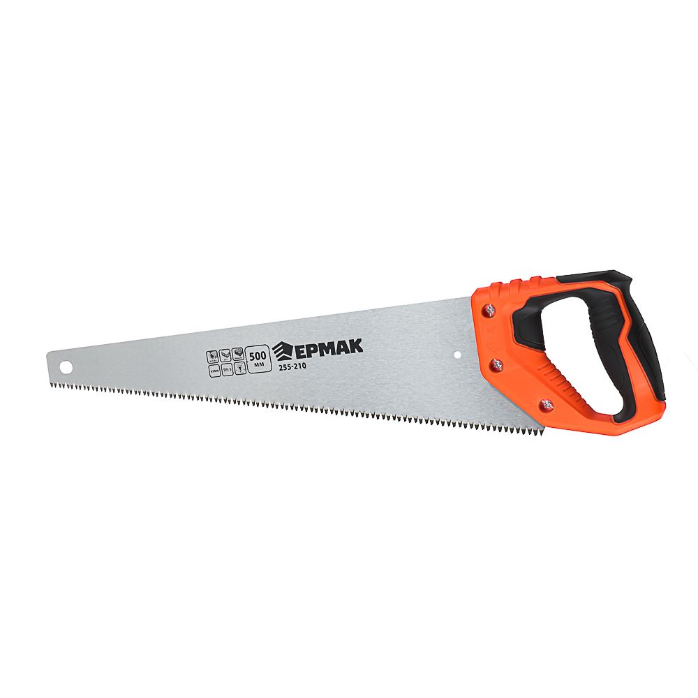 Ножовка по дереву ЕРМАК "Средний зуб 3D" TPI 5 длиной 500 мм с размером зуба 5 мм предназначена для распиливания древесины, используется в строительных, производственных и слесарных работах, а также пригодится на даче. Характеризуется высокой скоростью реза, а 3D заточка позволяет осуществлять поперечные и продольные пропилы в любых направлениях. Рабочее полотно из закаленной стали 65 MN с твердостью 50 по Роквеллу исключает поломку полотна и выкрашивание кромки в процессе распила даже при сильном нажатии на инструмент. Пластиковая ручка с прорезиненной вставкой обеспечивает комфортный и надежный хват.