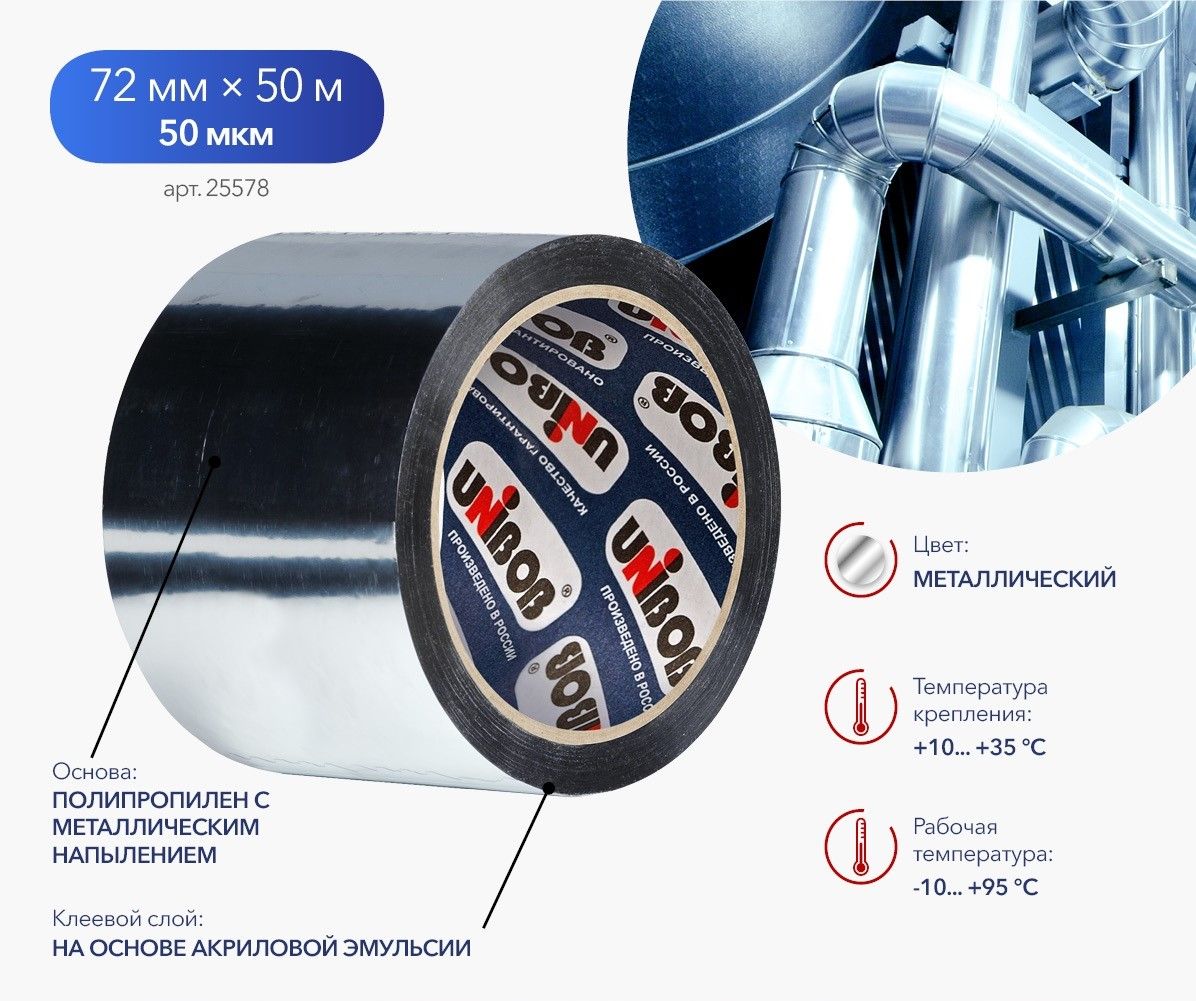 Читать все статьиСкотч металлизированный 72мм*50м 50мкм UNIBOB 25578