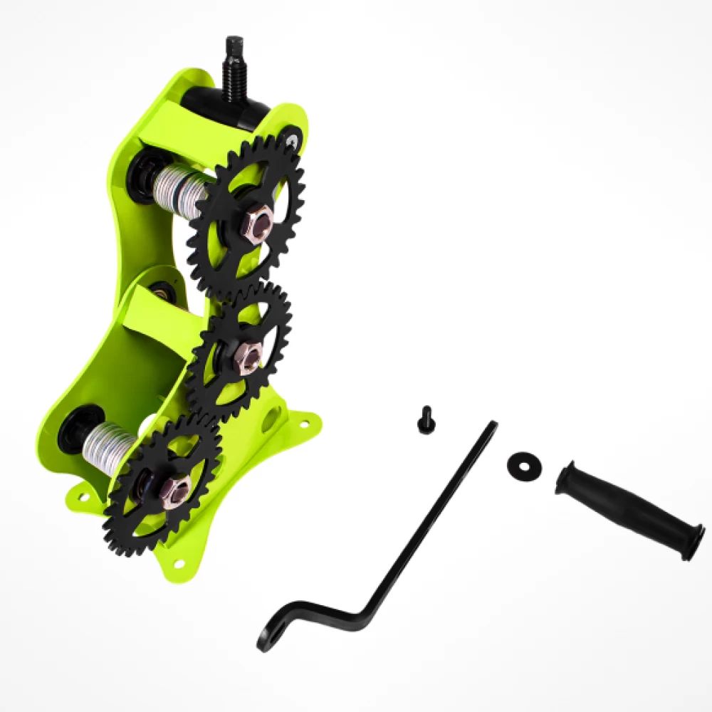 Конструкция ручки позволяет регулировать положение и скорость вращения для работы с профилями разного размера. Ручка съёмная, на её место можно установить понижатель передач для дрели или перфоратора. Это позволит автоматизировать, ускорить прокат трубы.
