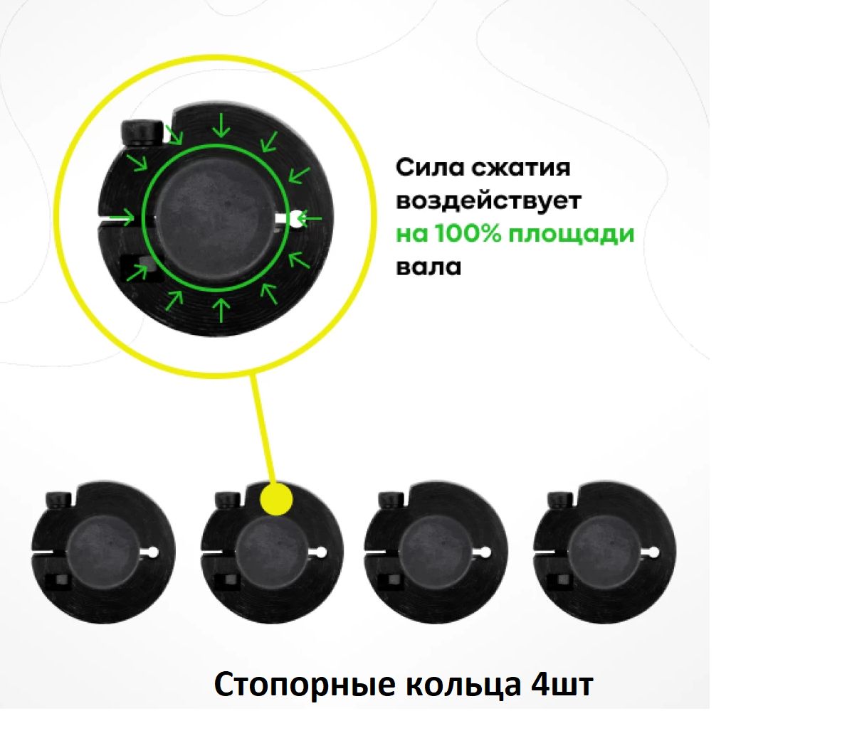 Стопорные кольца (новые) — универсальное приспособление для фиксации большинства типов труб, профиля и т. п. Подходят для трубогибов «DINO Стандарт», «Удачный Стандарт» и «Премиум». Стопорные кольца нового типа — уникальное предложение для мастеров, работающих с разными типами труб, профиля, полосой и прутками. В отличие от колец старого образца, которые пока активно используются, наши кольца обеспечивают безопасную фиксацию без вмятин на валках; надёжное крепление элементов без смещения трубы или профиля в сторону; быстрое и простое размещение — крепёж за счёт шестигранников. Ещё одна новая возможность. Оптимальная сила сжатия колец и плотное их закрепление на валах позволяет прокатывать полосы на ребро. С такой задачей не справится ни один из аналогов! Кольца отличаются высокой прочностью, не поддаются ржавчине. Материал изготовления — оцинкованный металл. Диаметр — 49 мм, толщина — 9 мм. При создании данного приспособления использован инновационный подход. Потому новые стопорные кольца — запатентованная разработка.