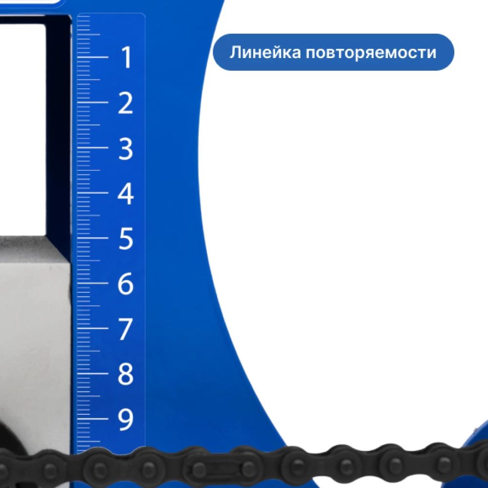 ЛИНЕЙКА ПОВТОРЯЕМОСТИ Линейка повторяемости на корпусе трубогиба обеспечивает точность гиба 0,1 см, возможность повторяемости элементов. Для повторения радиуса кривизны гиба нужно зафиксировать гайки повторяемости в нижнем положении на валу прижимной клети.
